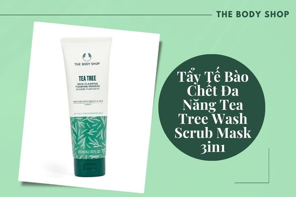 Tẩy tế bào chết mặt cho da dầu mụn Tea Tree The Body Shop được nhiều người lựa chọn nhờ khả năng làm sạch sâu và hỗ trợ kiểm soát bã nhờn hiệu quả. Với chiết xuất tràm trà đặc trưng, sản phẩm giúp loại bỏ tế bào chết tích tụ, hỗ trợ thông thoáng lỗ chân lông và giảm tình trạng mụn đầu đen, mụn ẩn. Đây là bước quan trọng trong chu trình skincare cho da dầu mụn, giúp da mịn hơn và hạn chế bí tắc.